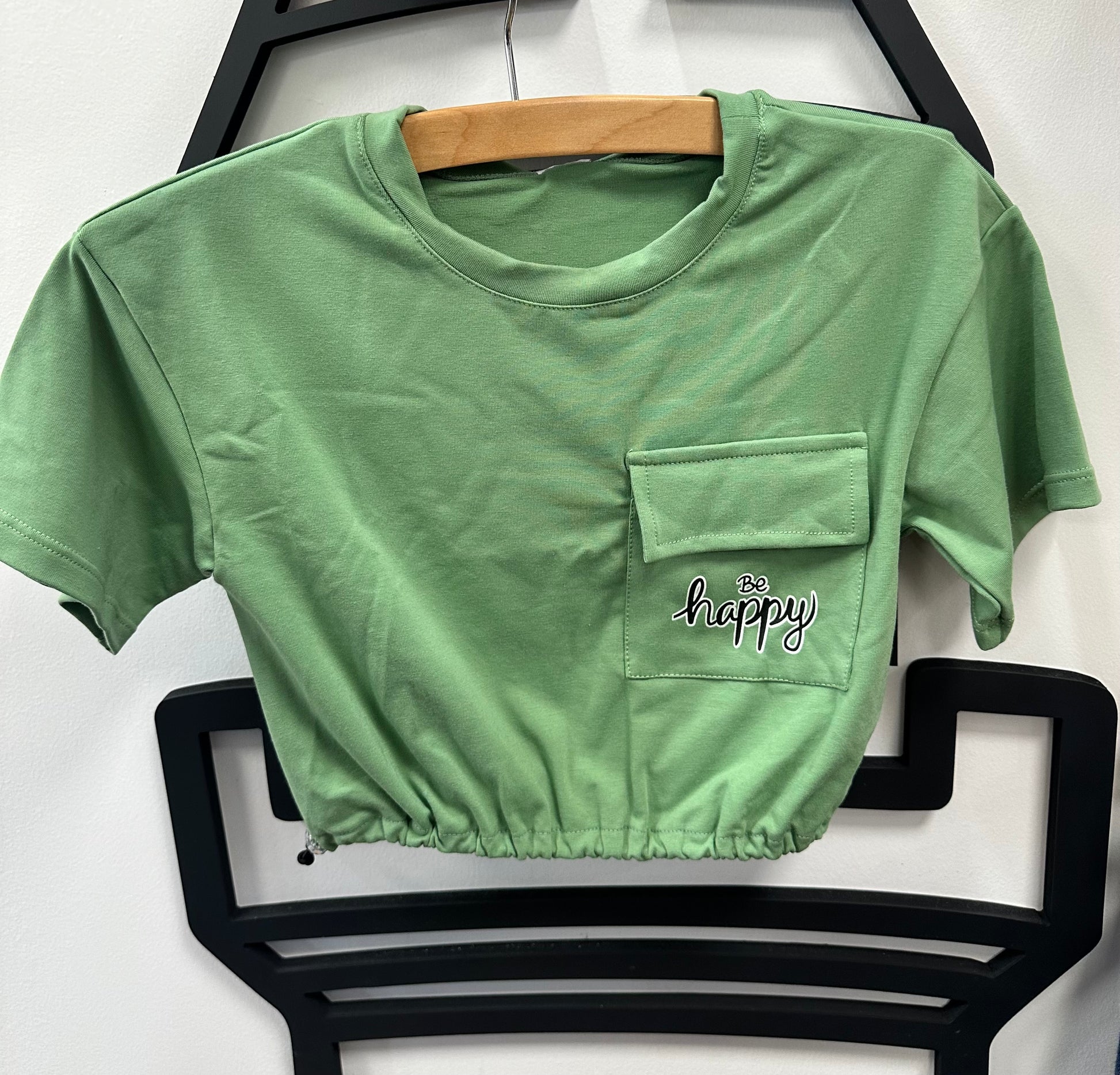 Camisa top, oversize. Corre bien. Tiene elástico (cordón) en el final de la camisa por si quiere usarla más elevada. Detalle: no es bolsillo, simula.