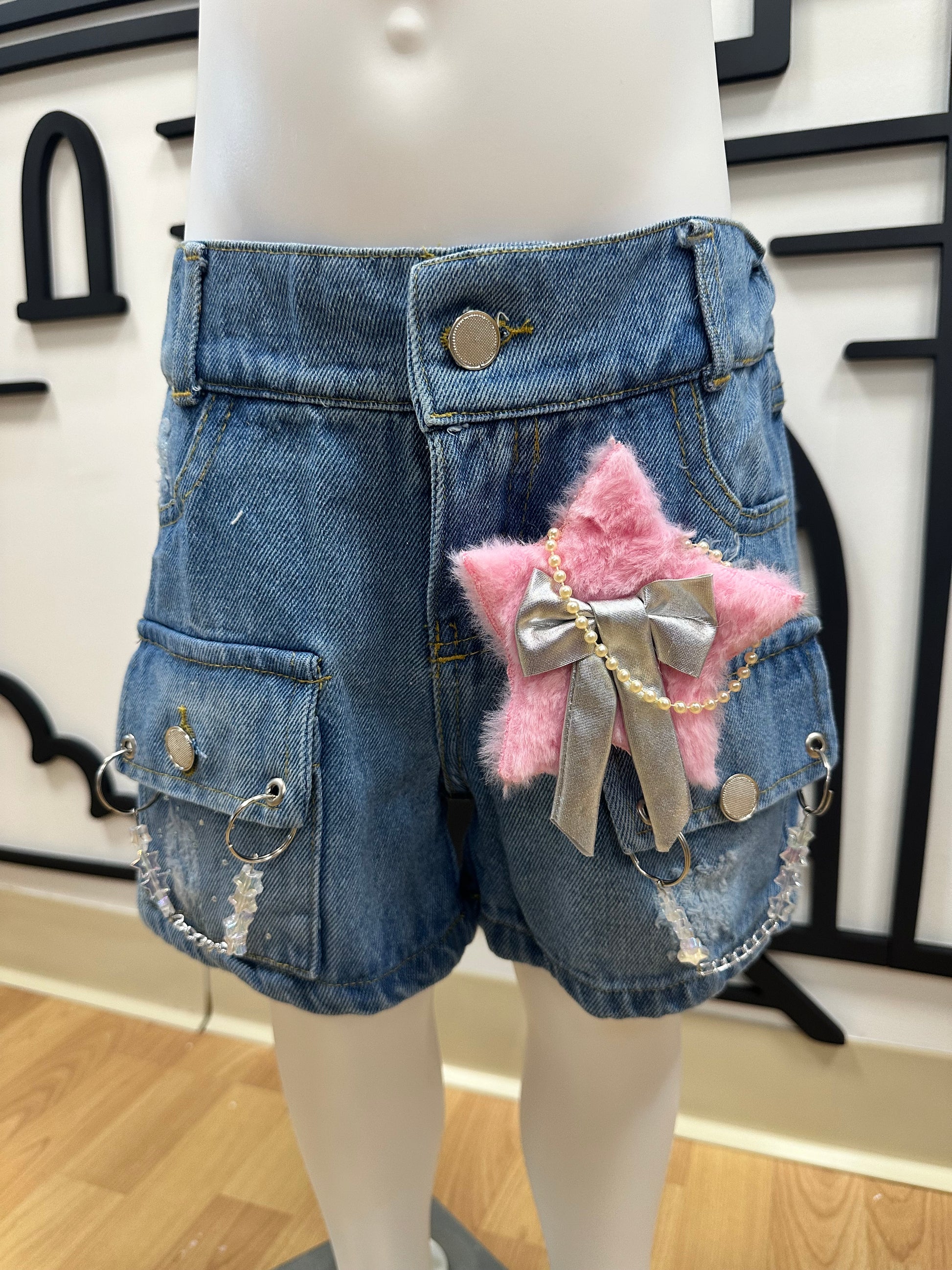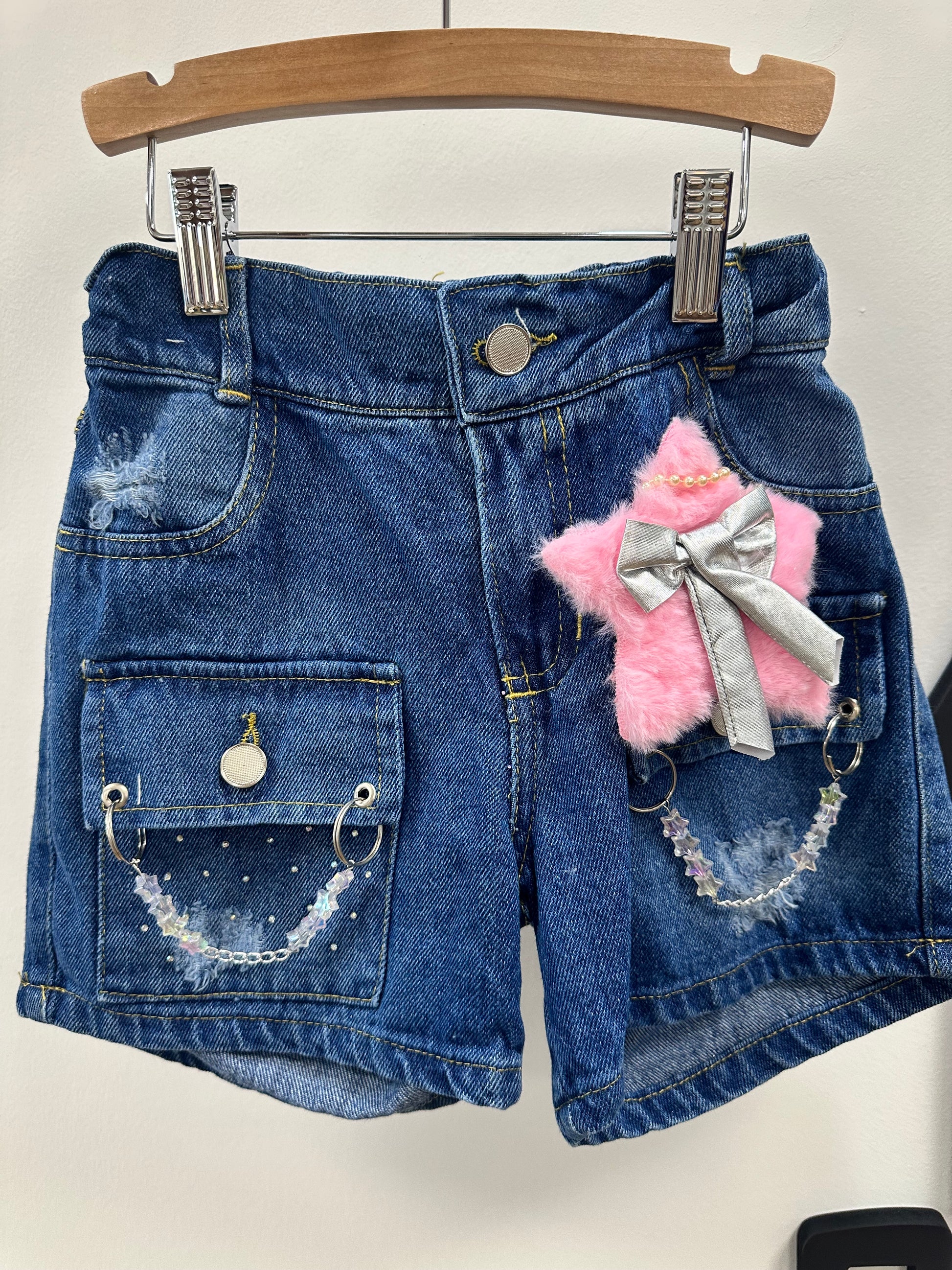 Mahón cargo star. Detalles en cadenas y estrella. Puede ser azul claro o azul oscuro. Depende de la disponibilidad. Corre hasta dos tallas menos.