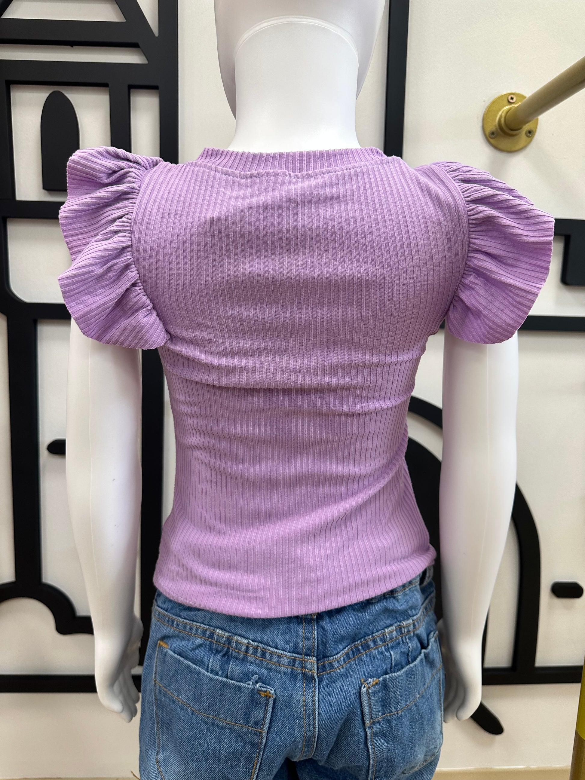 Blusa color violeta. Tiene riso en mangas. Corre bien.