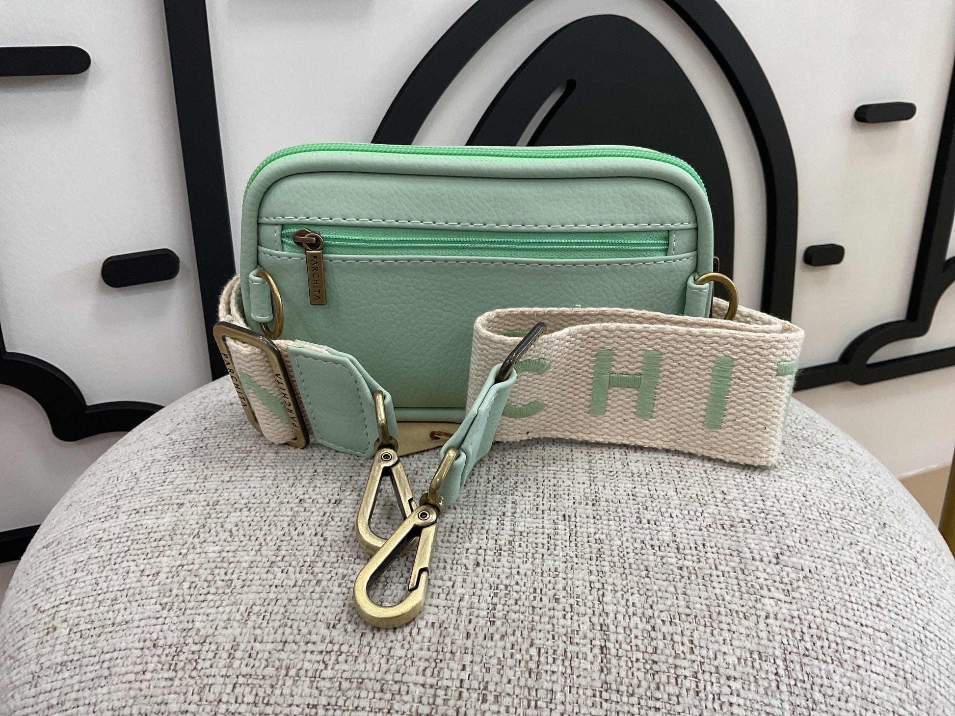 Original Parchita Paciflora Colombiana. Wallet color verde. Trae correa y la puedes usar cruzada, cintura o colgando en hombros. Entregada en bolso reciclable que ayuda a cuidado. No tiene devolución.